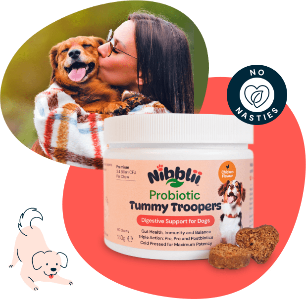 Nibblii Tummy Troopers | Probiotic Dog Chews | Digestive Support | Triple-Action 3.4 billion CFU